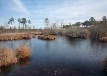 Vestiges de l’ancienne lande humide qui courait sur des centaines de milliers d’hectares voilà 150 ans, les marais et lagunes d’origine glaciaire constituent, ici, un milieu secret et magique. De nombreuses espèces spécifiques de faune et de flore s’y développent et attirent des oiseaux qui viennent s’y restaurer. Ce sont donc des espaces naturels très riches en biodiversité. Un parcours d’environ 3 km a été aménagé pour vous permettre d’observer cet environnement atypique, en le préservant.